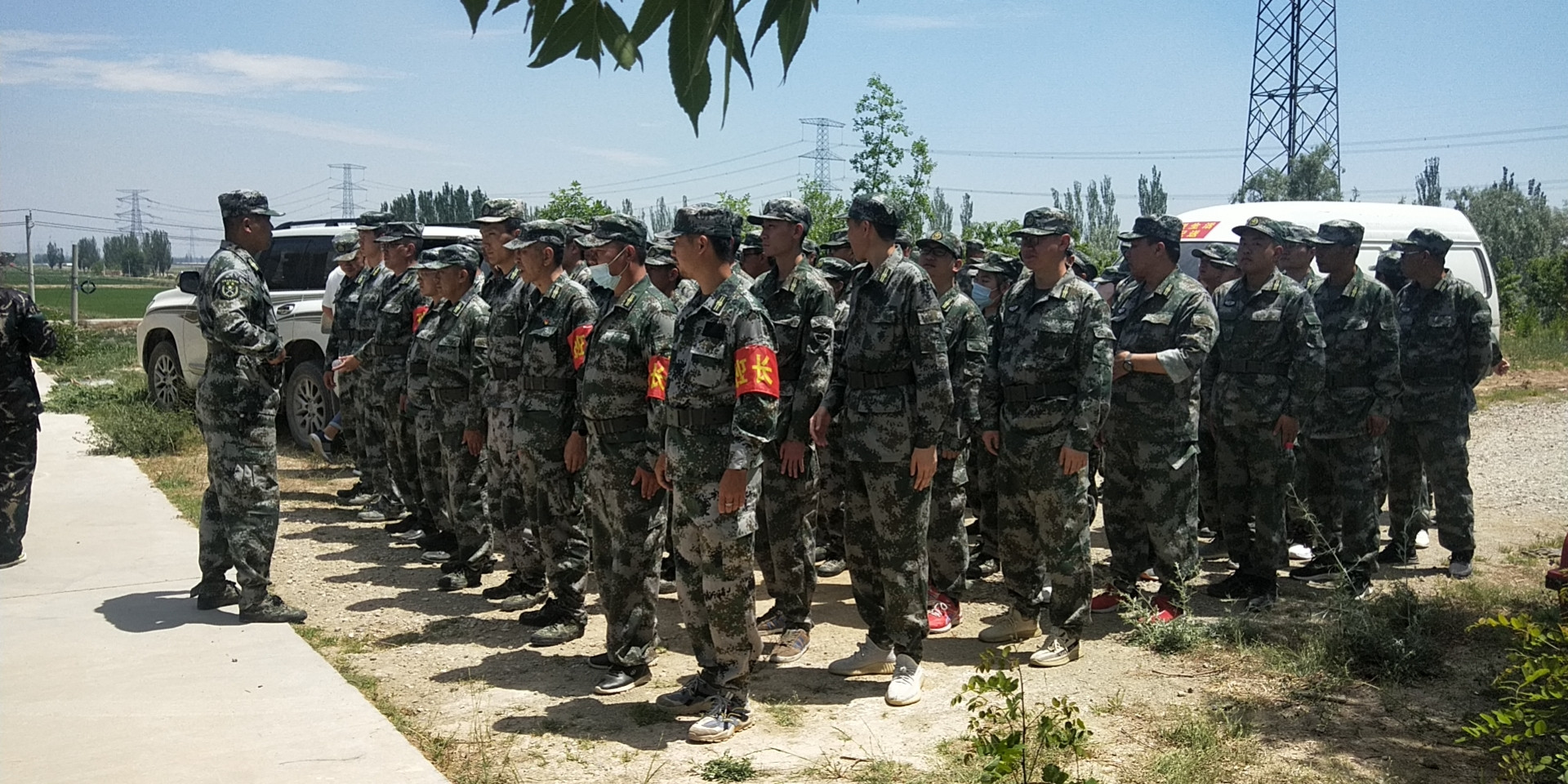 參訓人員們蓄勢待發(fā)、拉練前做演練動員。