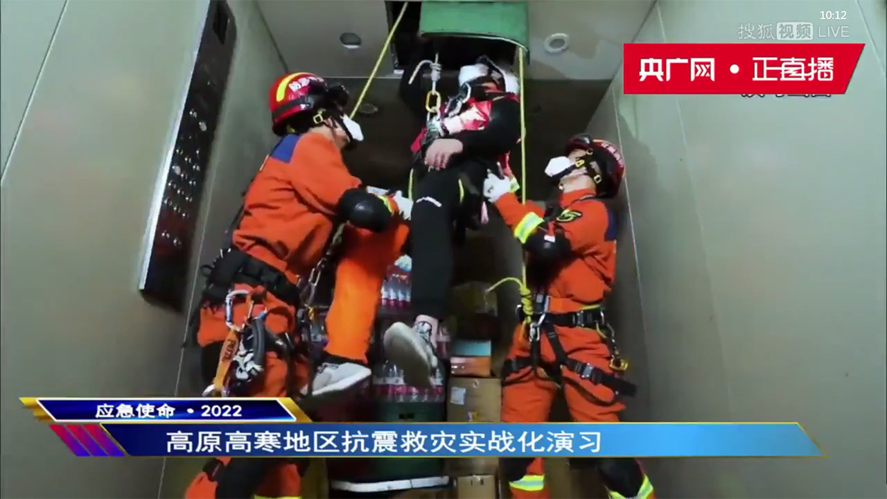 消防員架設多功能救援支架,構設繩索救生系統(tǒng),兩名被困者依次出井脫險!蘭州德利泰多功能救援支架裝備,亮相“應急使命2022”高原高寒地區(qū)抗震救災實戰(zhàn)化演習!